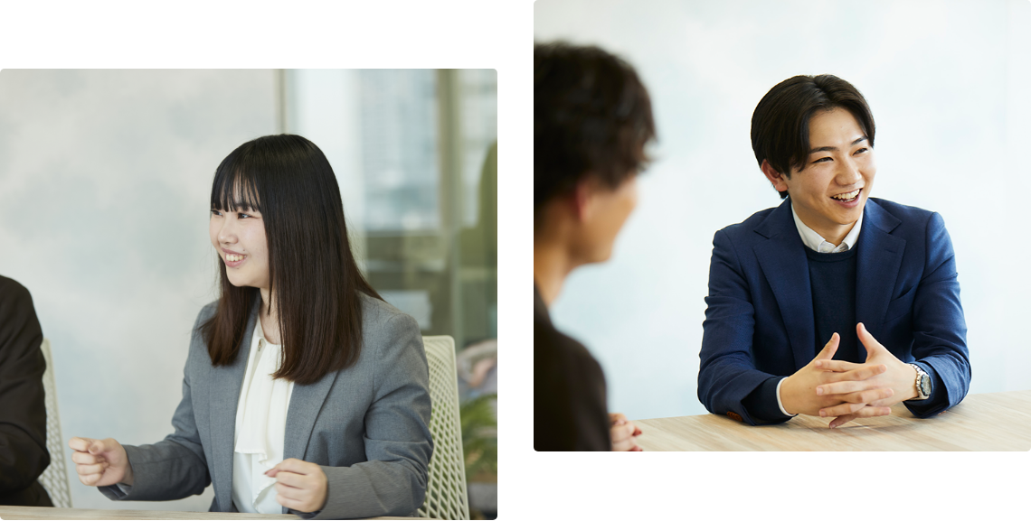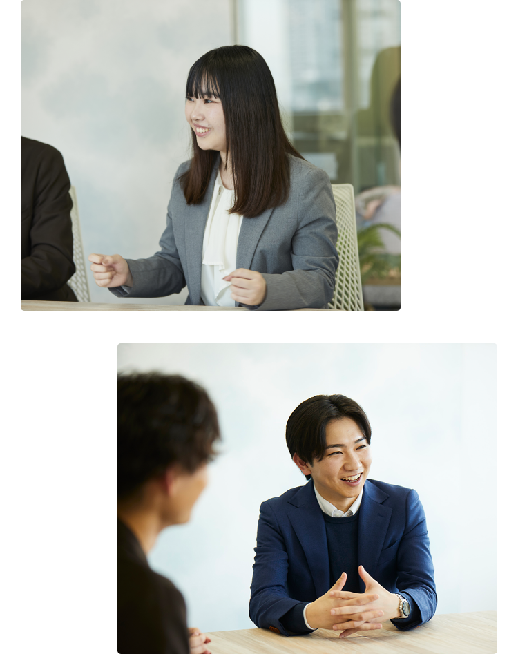 - 私は会社説明会に訪れたとき、社員の方々から、とても気持ちのいい挨拶を受けました。就活期間中にそうした経験がなかったので、衝撃でしたね。